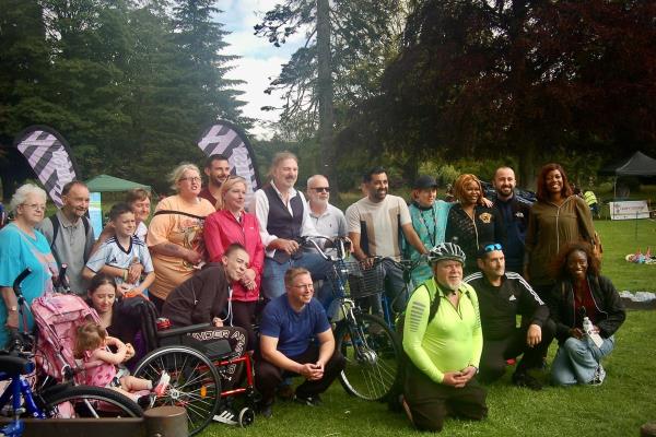 优素福在邓迪的坎珀当公园参加自行车活动时对活动人士发表了讲话。